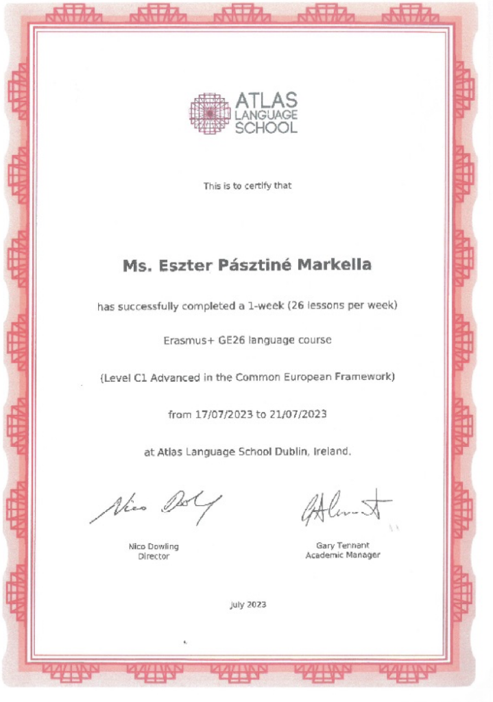 Németnyelvtanár létemre egyre gyakrabban tapasztalom, hogy a szakmai fejlődéshez fejlesztenem kell a régen megszerzett angoltudásomat, hiszen egyre több szakmai anyag és videó csak angol nyelven hozzáférhető a világhálón. Emiatt vettem részt idén egy általános angol nyelvi kurzuson az Atlas Language School-ban Dublinban.