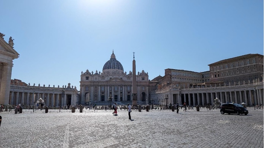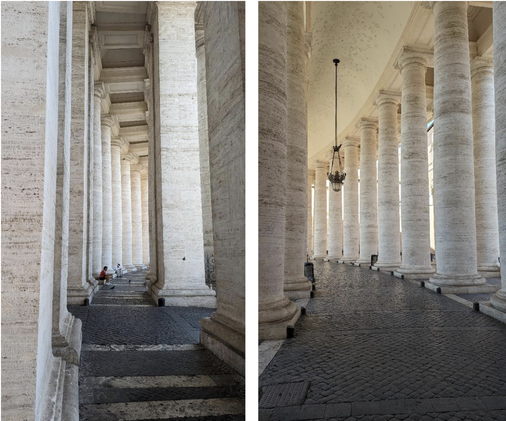 A Vatikán látogatását a Piazza San Pietro megtekintésével kezdtem, amely Bernini legkiemelkedőbb alkotása: aPiazza Obliqua ellipszis alakú, amelyet négy sor hatalmas dór oszlopból álló kolonnád rajzol ki. A trapézforma PiazzaRetta közvetlenül a Szent Péter-bazilika előtt terül el. A San Pietro in Vaticano, azaz a Szent Péter-bazilika a katolikus közösség anyatemploma, a leghíresebb és leglátogatottabb templom a világon. A jelenlegi épület reneszánsz és barokk rekonstrukció, amely egy 319 körül épült templomra épült rá, amelyet Szent Apostol sírja fölé helyeztek. Sajnos a temérdek ember itt is megakadályozott abban,hogy a bazilikát megtekintsem, ezért átmentem meglátogatni a pápai püspöki templomot, a San Giovanni in Laterano-t.