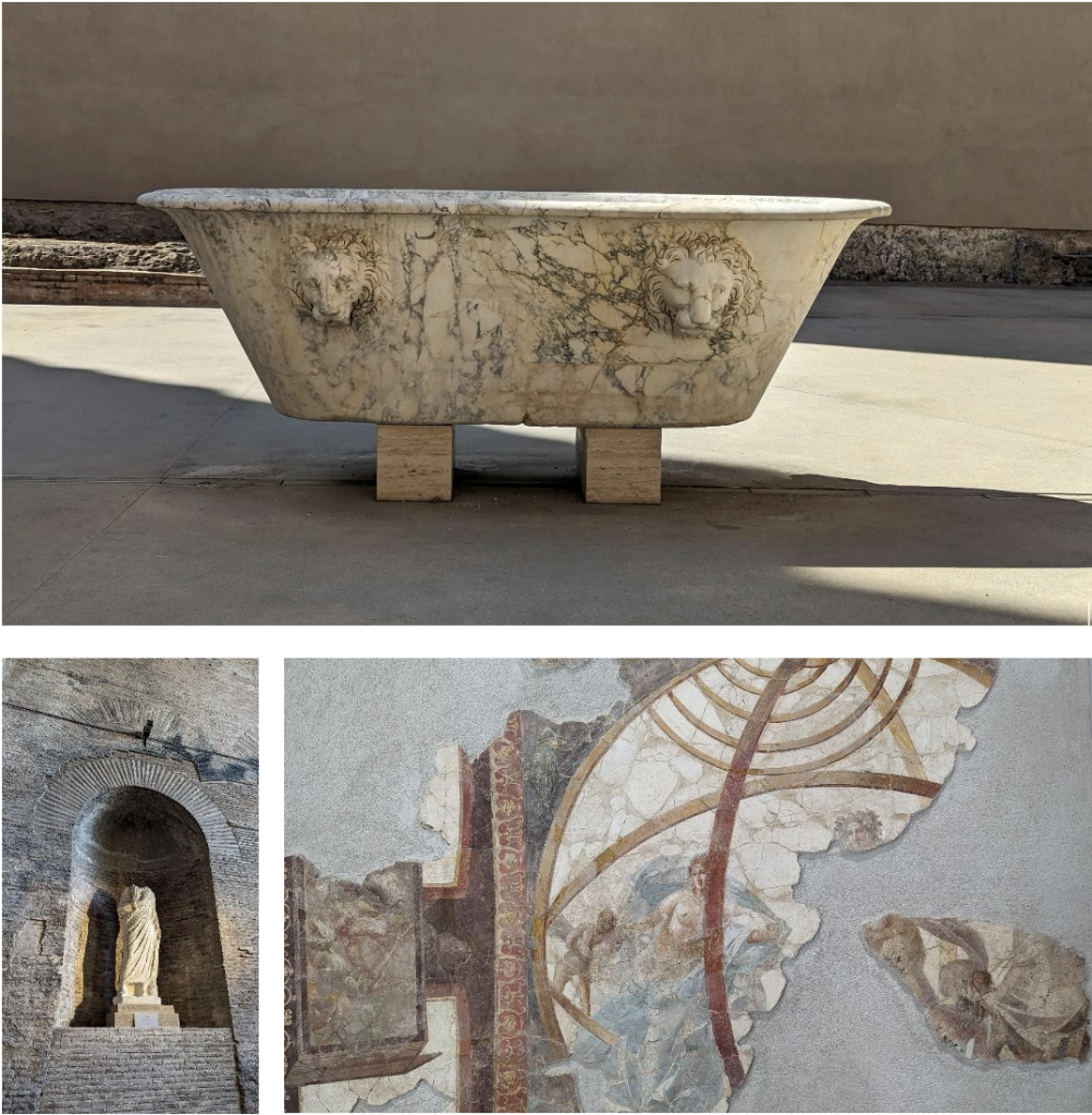 A 298 – 306 közt épült fürdő Caracalla komplexumához képest szerény méretűnek mondható; mérete