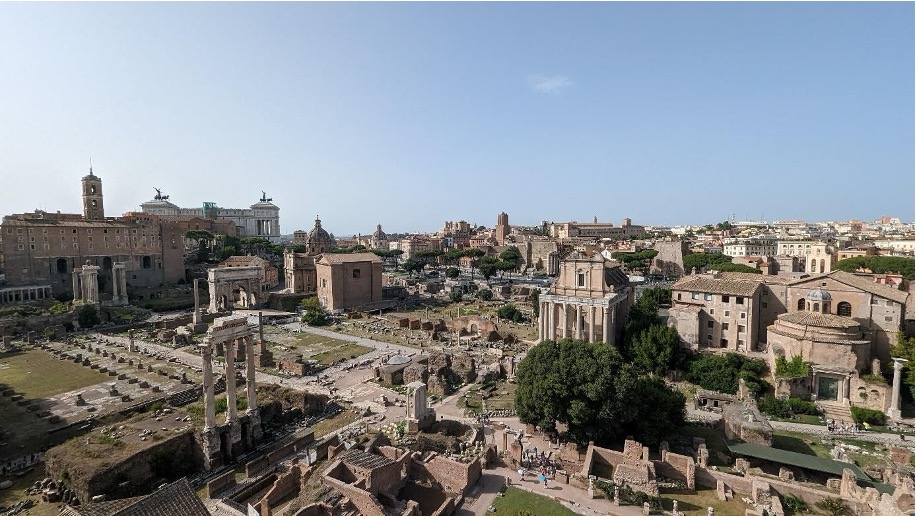 A Foro Romano az ősi Róma politikai, vallási, kereskedelmi és törvénykezési központja. Az istenek imádatának helyéül itt épültek a legkorábbi templomok: a Saturnus, a Dioszkurok és a Concordia temploma. A területen a városi építészet később, csak a Kr.e. 2. században indult virágzásnak és a századok folyamán számos bővítés és alakítás zajlott. Néhány évszázadon át a felejtés volt a sorsa, mígnem a reneszánsz idején feltámadt a klasszikus Róma iránti érdeklődés. A XVIII. században megkezdődött a Forumon a máig is tartó ásatás és a romok feltárása. A területen júliusban rekkenő hőség van és az árnyék kevés, mégis kihagyhatatlan élmény a műemlékek megtekintése. Érdemesegy teljes napot rászánni a temérdek látnivaló befogadására.