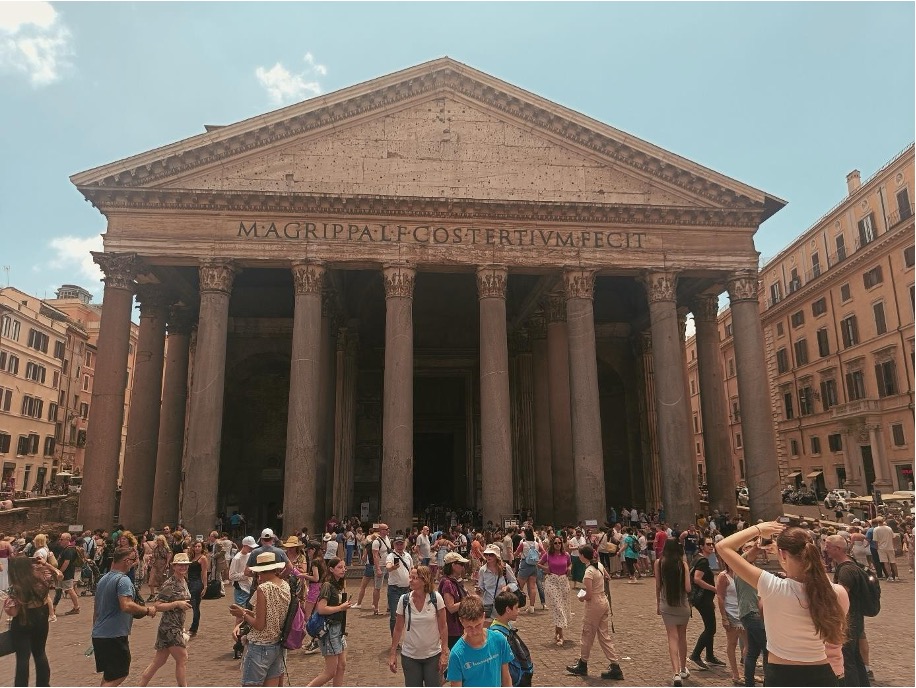Róma egyik legrégebbi épülete a Piazza della Rotondán áll, Augustus császár veje, Agrippa építtette a négyszögletes alaprajzú templomot Kr.e. 27-ben kezdetben valószínűleg a bolygó isteneknek ajánlva, mivel az akkori kormányzó – Augustus – visszautasította hogy az épületet neki szenteljék. A 80-ban keletkezett római tűzvész következtébenHadrianus császár új épületet emeltetett 118 – 125 között. Ez az a Pantheon, amit ma is látunk. Nyáron itt is hatalmassor fogadja az embert, ha az épületbe szeretne bejutni.