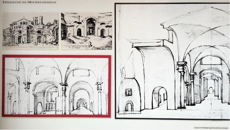 376 x 361 méter, 3000 ember fért el benne. Maximianus császár – aki hatalmát megosztotta Diocletianusszal –építette, hogy a városlakók igényeit kielégítse. 537-ben a gótok lerombolták, eredeti méretére valójában csak következtetni lehet. Érdekessége, hogy amikor IV. Pius a S. Croce in Gerusalemme szerzeteseinek adta az épületet,Michelangelo a fürdő központi csarnokát átalakította a Santa Maria degli Angeli templomává, melynek átépítése 1563-ban kezdődött.