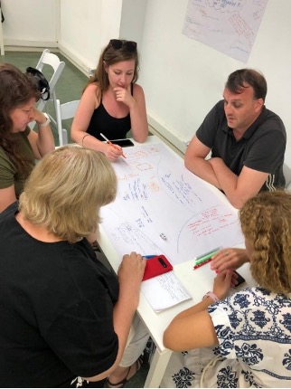 A képzés módszertani része gyakorlat-orientált volt, jó gyakorlatok bemutatásán és megosztásán keresztül vitattuk meg azokat a témákat, amelyeket kiválasztottunk az első órán, így szóba került diákjaink motiválása, a tanári szerepek, a közösség-építés és pozitivitás, és bár manapság a mesterséges intelligencia felhasználhatóságának kutatása érdekel a leginkább, jó volt egy kicsit elmerülni a Lexical Approach kommunikatív, semmilyen technológiát nem igénylő módszerében a tanfolyam nyelvi fejlesztéssel foglalkozó részében. Megvitattuk, mi a különbség a TBL és a PBL között, s hogy hogyan használjuk a kétféle megközelítési módot a tanári gyakorlatunkban, valamint megterveztük és elkészítettük csoportokban egy számunkra ideális lakóház makettjét is, miután összehasonlítottuk a lakhatási körülményeket, problémákat az általunk képviselt és ismert európai országokban.