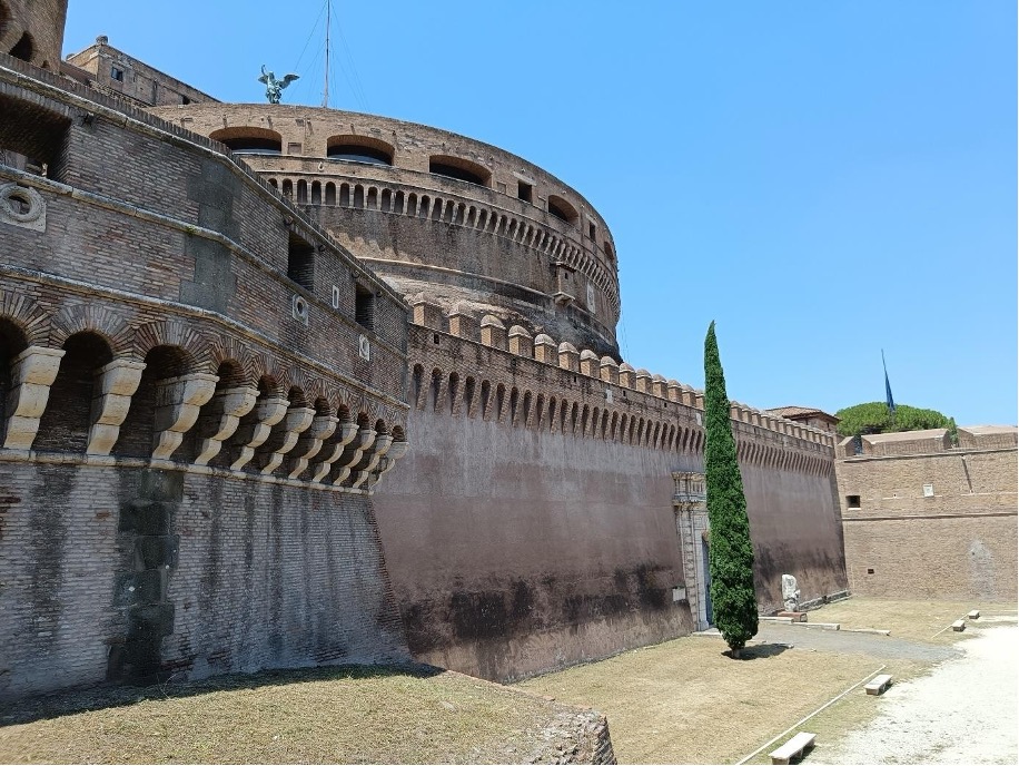 A Ponte San’t Angelo az egyik legcsodásabb középkori híd Rómában, Hadrianus császár építette 134- ben győzelmibejáratként a saját mauzóleumához. Mivel hétfőnként több múzeum zárva van Rómában, érdemes aznap ellátogatni a helyszínre, más napokon óriási a tömeg. A híd balusztrádját és a 10 angyalfigurát a barokk szobrász, Bernini és művésztársai készítették IX. Kelemen pápa megbízásából. Ezt követően kapta az Angyalhíd nevet. Az angyalok mozdulatai tükrözik az érett barokk erőteljes érzelmi gesztusait, mindegyikük hátat fordít a víznek és a zarándokokfelé néz. A Bernini által készített két angyal (a töviskoszorút és a kereszt feliratot tartó) a San Andrea della Frattéban látható, a hídon másolatok szerepelnek. A Castel Sant’Angelo eredetileg Hadrianus császár mauzóleumának épült,majd a középkorban erőddé alakították, a reneszánszban pedig pápai rezidenciává. Nevét egy csodatételről kapta: 509-ben hatalmas járvány tombolt Rómában, szinte a teljes lakosság elpusztult. Gergely pápa (590 – 604) bűnbánataközben megjelent Mihály arkangyal, aki véres kardját visszahelyezte hüvelyébe, ezzel jelezve, hogy isten haragja lecsillapodott. Gergely pápa hálából a vár tetejére állíttatta az angyal alakját. Ma Pieter van Verschaffelt által 1752-ben készített bronzangyalt láthatunk a felső teraszon.